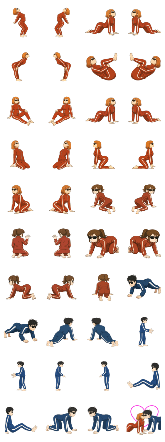 青と赤のアレンジスタンプカップル組体操 2 -LINEスタンプマニア