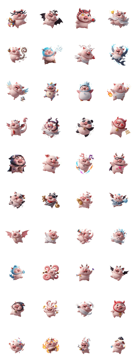 ピンクぶたのコスプレ、可愛く癒やし系、さまざまな衣装に変身、ユーモアたっぷり、LINEスタンプ向け