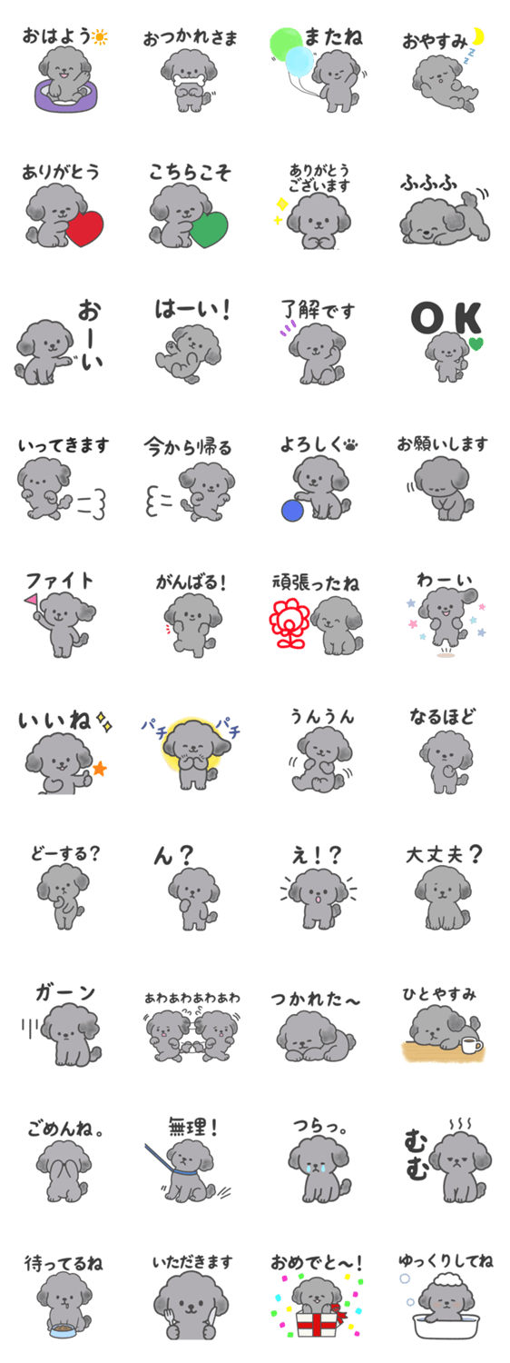 ふわふわトイプーの癒しスタンプです。毎日使いやすい言葉を集めた、日常使いしやすいスタンプです。