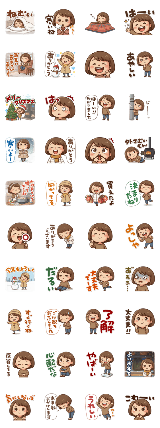 可愛いママさんのあいさつ(冬)第1弾 -LINEスタンプマニア