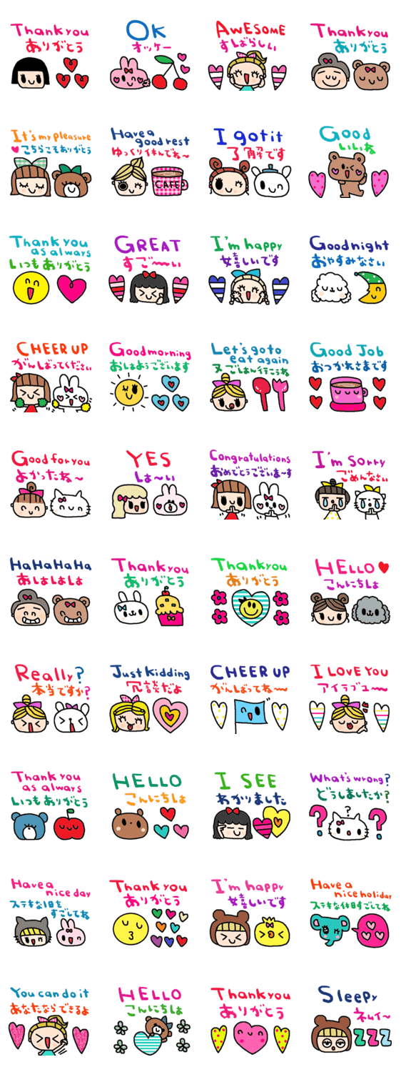 シンプルな日常会話スタンプです。お気遣いスタンプ 日本語英語スタンプ