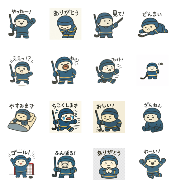 かわいくてシンプルなホッケーマスコット。毎日の挨拶や面白いリアクションに使ってね!