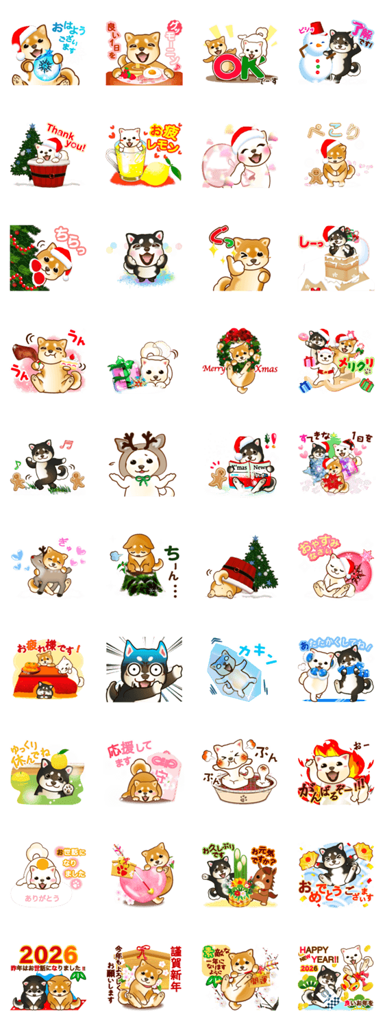 花よりわんこ4(X'mas、正月、2026版) -LINEスタンプマニア