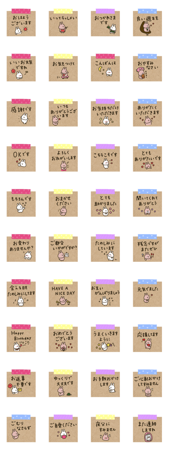 時々うさぎのうさぎだけ。ピンクもいる。かわいいメモ風。お気遣い言葉いり。敬語。