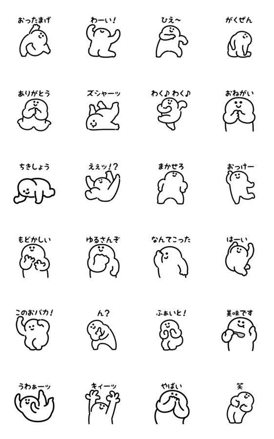 感情表現豊かな人間のアニメーションスタンプです。ジェスチャー/面白い/楽しい/笑顔/シュール/手書き/ゆるかわ/シンプル/使いやすい/毎日使える/日常/ゆるい/スマイル