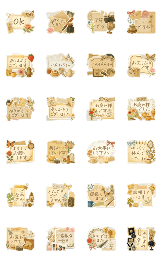 動く♡コラージュシール風スタンプ・基本・挨拶・敬語・スクラップ・シール・フレークシール・おしゃれ・ヴィンテージ・