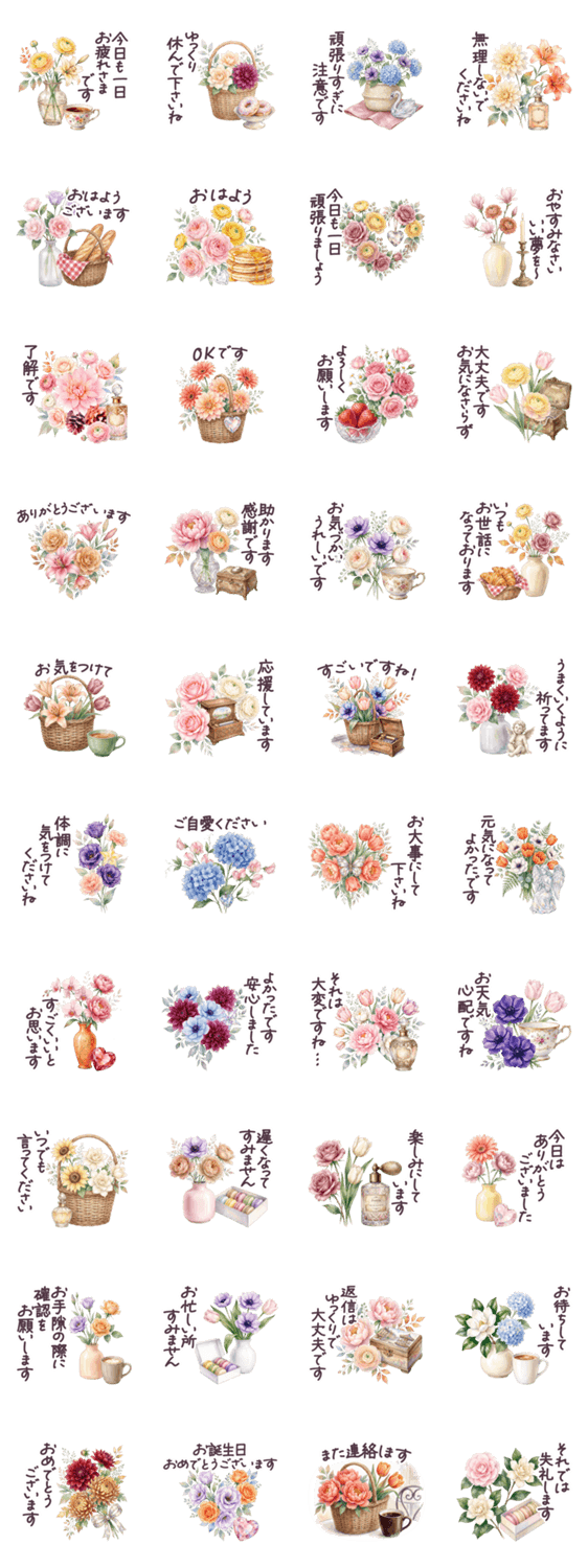 毎日使える フランス 気遣い✿大人上品お花 -LINEスタンプマニア