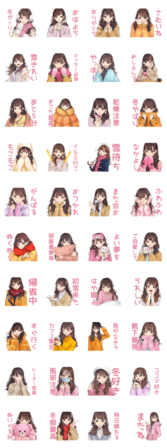 ガーリー女子の冬スタンプ!普段使い、おしゃれ、日常、挨拶、あったか冬服、かわいい、友達と使える