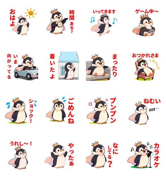 可愛いぺんぎん、南極の王子イリオの日常で色々使えるスタンプの第一弾です。