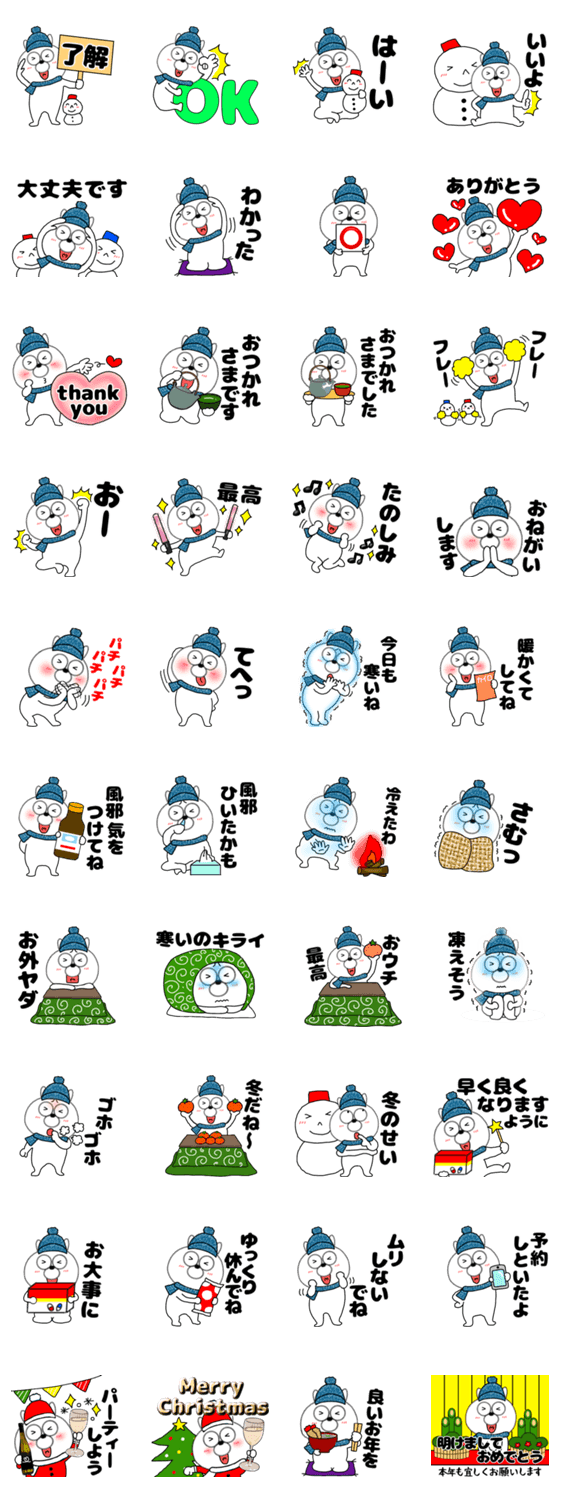 毎日使える可愛いウサギの冬に使えるスタンプです クリスマス・お正月スタンプ入り