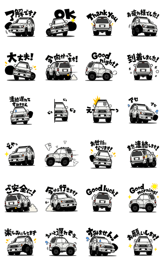 ロングボディでタフな四駆のスタンプ第2弾です!友達同士で、チームのグループLINEで、愛車をアピールしちゃおう!