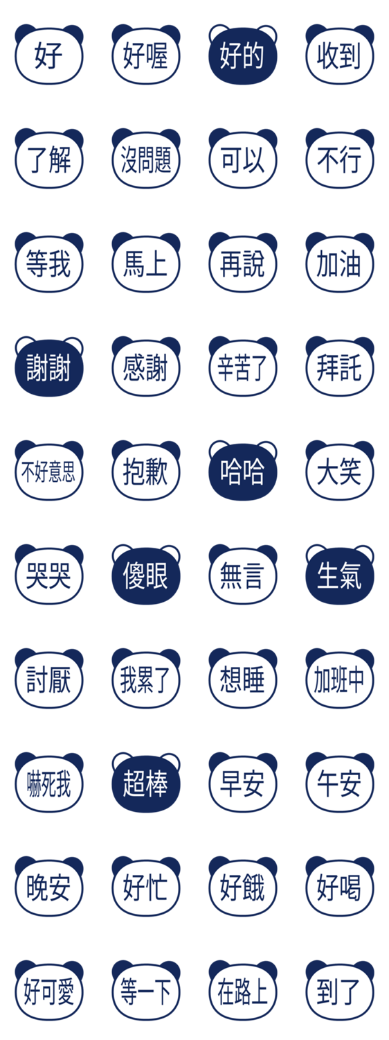 【中国語 繁体字】 パンダ日常会話・紺 -LINEスタンプマニア