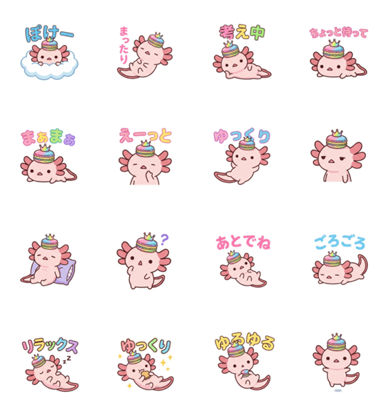 王冠がトレードマークの「うぱろん」。 今回はマイペースな気持ちを伝えるスタンプです。 ゆる〜く使ってください。