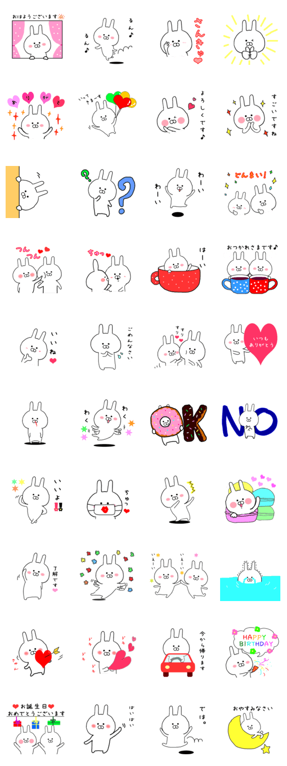 【ちびうさぎシリーズ】シンプルで使いやすいうさぎのスタンプ、ずっと使える基本セット第二弾です♪日常の挨拶、ありがとう 誕生日など、よく使う言葉を詰め込みました♪