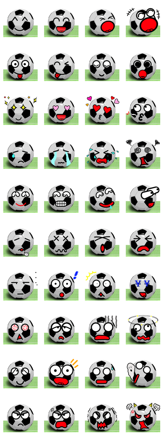 表情豊かなボール(3D風)で喜怒哀楽を表現!サッカー・フットサル仲間との会話の中で巧みにスタンプして下さい。