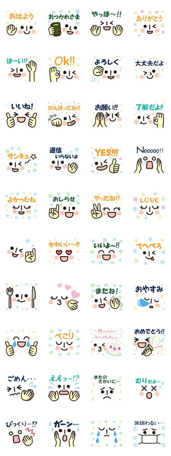 家族や友達、恋人、誰にでも送りやすい!シンプルな顔文字のスタンプです。