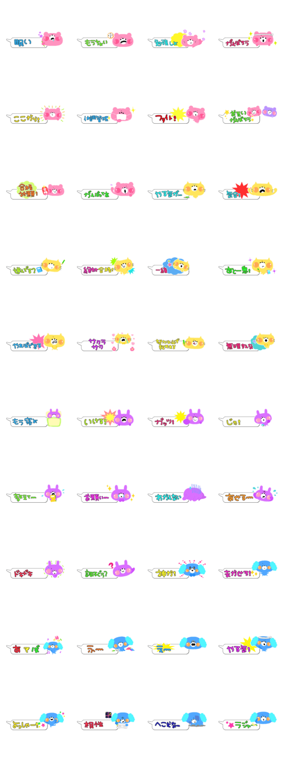 高さが低い吹き出し付きのスタンプで1画面にたくさん使える!学生にぴったりの内容満載♪