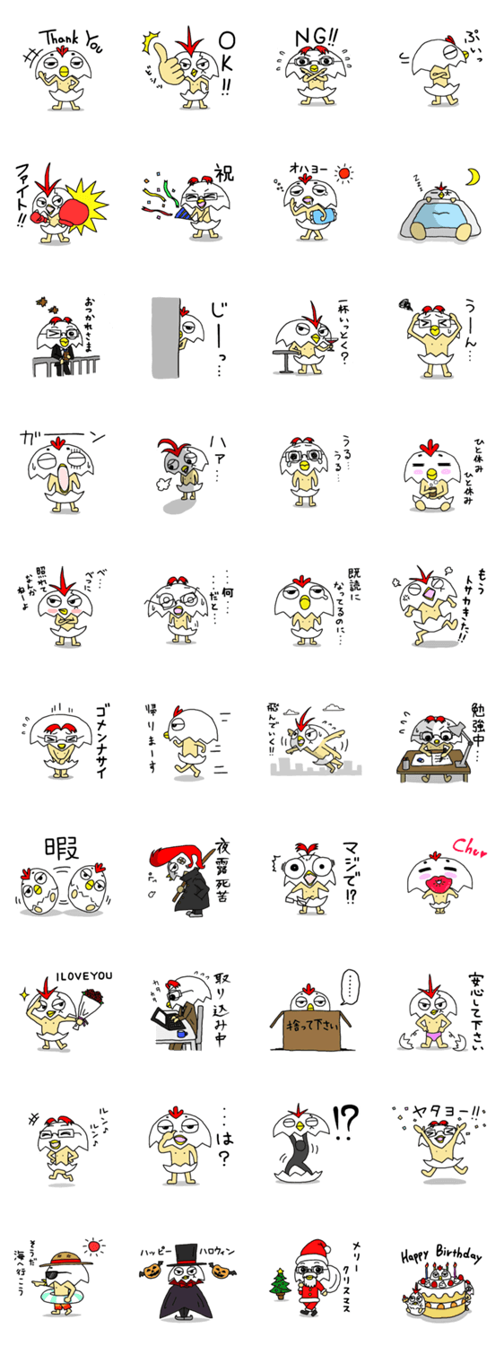 卵の妖精? われたま三兄弟のスタンプです! やる気のない長男「ハジメ」、やんちゃな次男「リュウジ」、真面目な三男「サブロー」。下手なりに頑張ったのでぜひ!