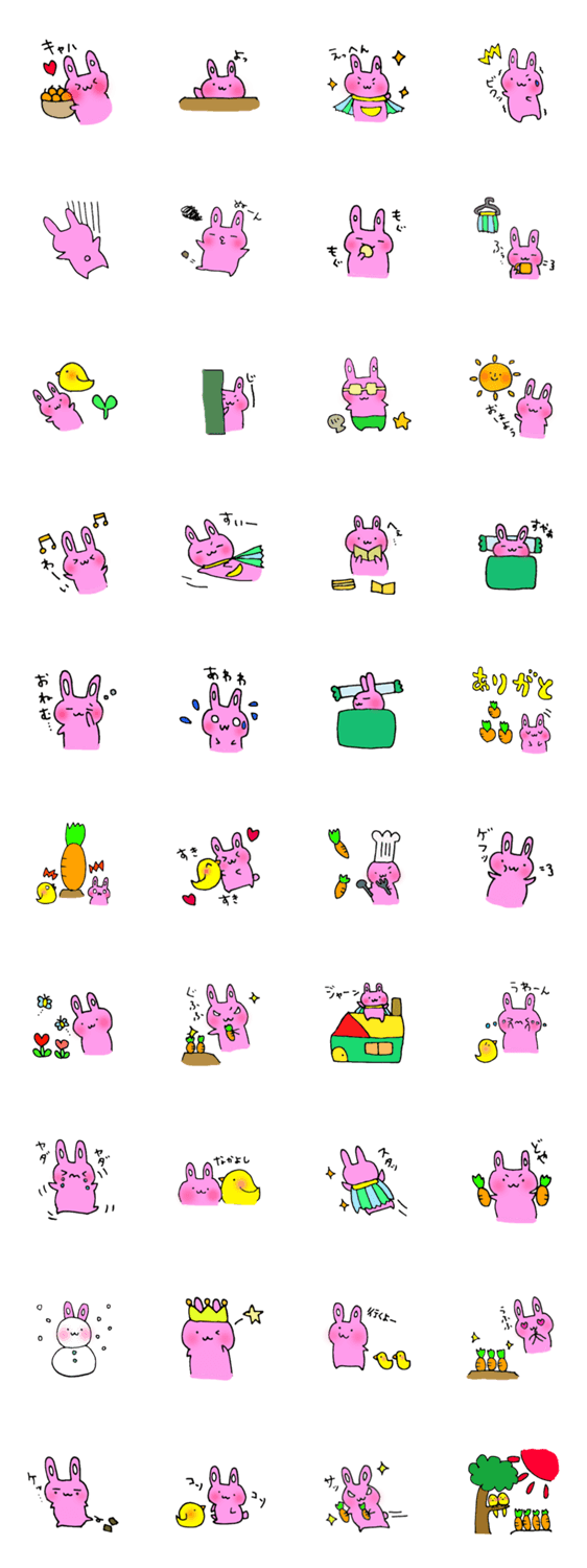 のんびりやさんだけど、動物達を守るヒーローになりたいうさぎくんのスタンプです。ひよこくんは、ヒーローうさぎくんの親友!よろしくお願いします。