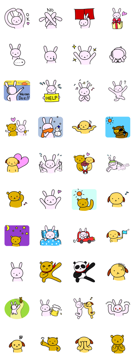 このスタンプは手書きの動物達です。無表情だけど気持ちあふれる動物の様子がとてもかわいいです。日常の会話に使えます。