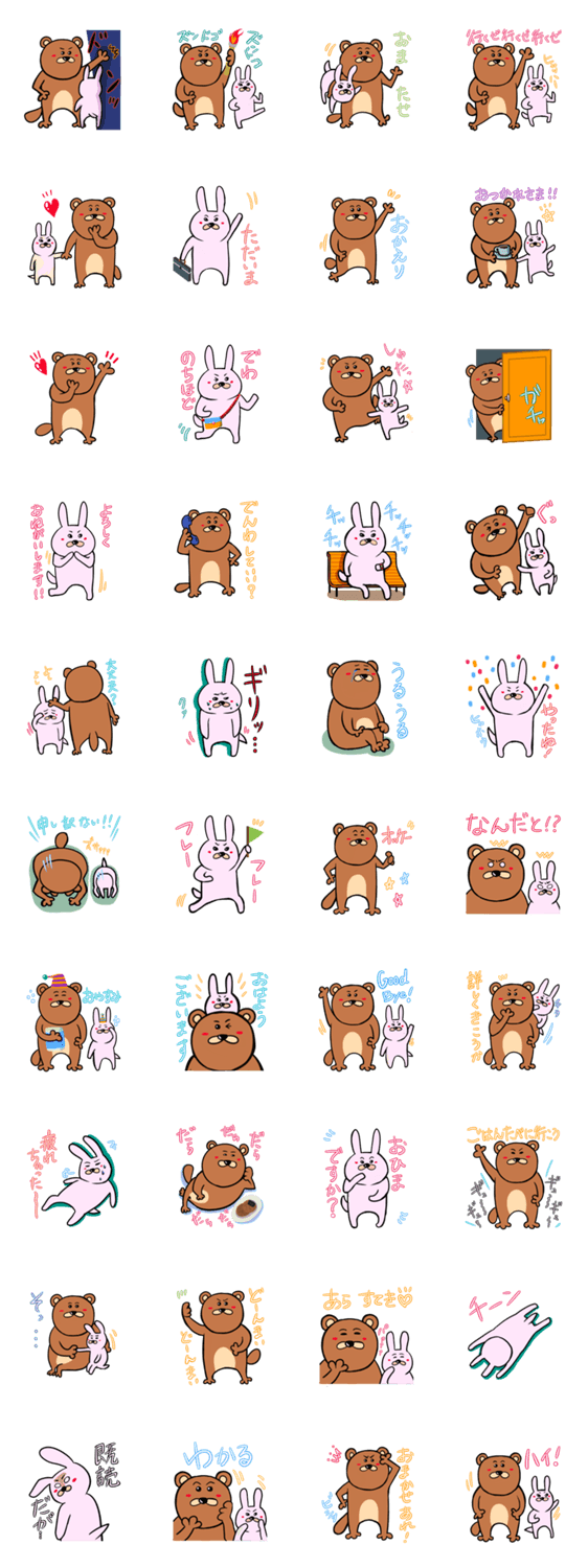 ゆるぽてキャラ「ぽてクマ」の日常的によく使えるスタンプです。友達のうさぎのウサ吉が登場。可愛いキャラたちのゆるい日常。
