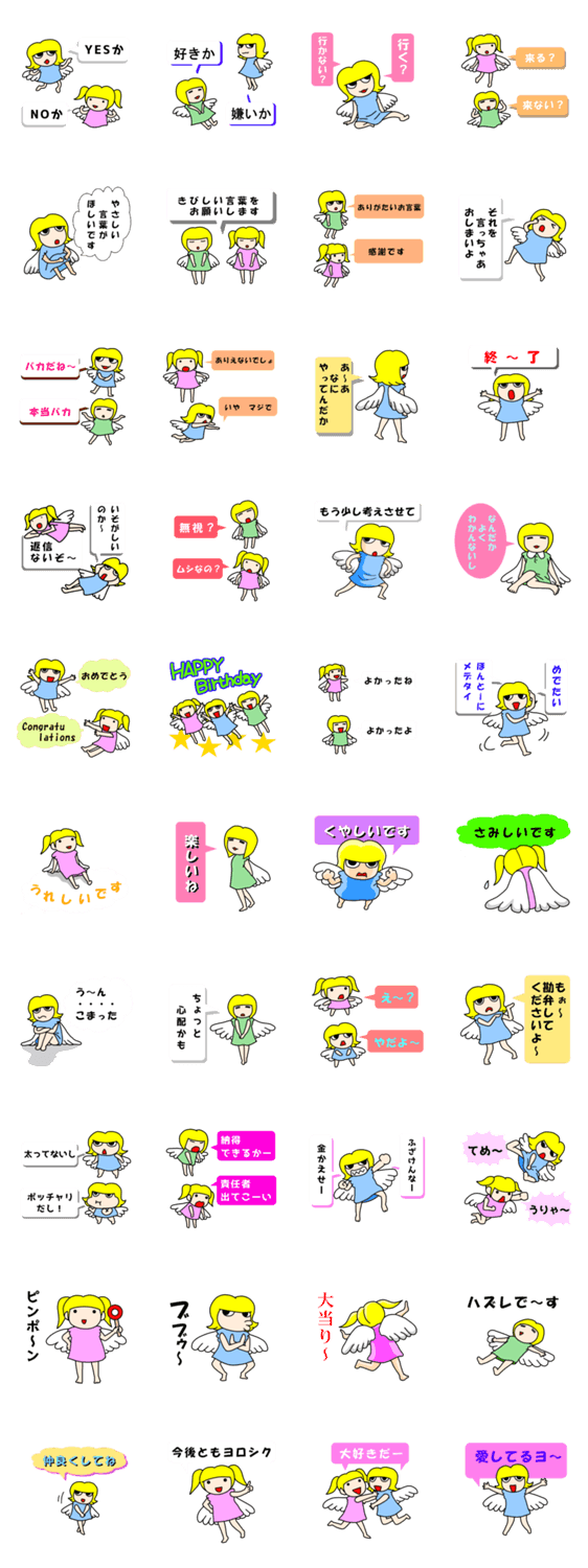 カワイイ天使のキャラクター達が、フキダシで呟くスタンプです。ほのぼのとした気分でご利用ください。