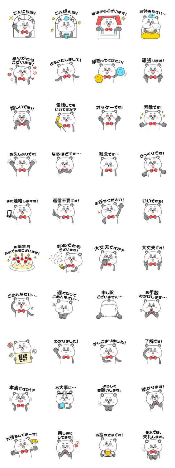 大きな顔のパンダさんの毎日使える敬語のスタンプです!