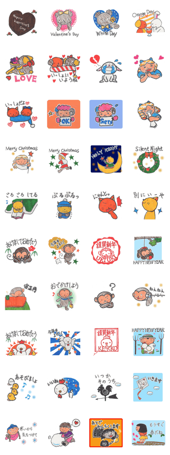クリスマス、お正月、バレンタインデー/ホワイトデー 等冬休みから春休みまで使える季節のイベントスタンプ。かわいいくまさんやハートがあります。