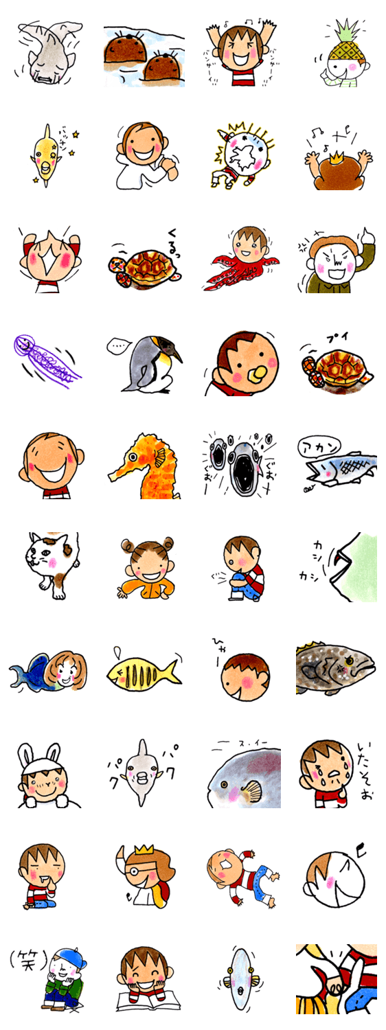 まつおかさんとゆかいな生き物たちはいつもおどろきとよろこびの連続です。マンボウさんやカスザメさん,ペンギンさんも出てきます。