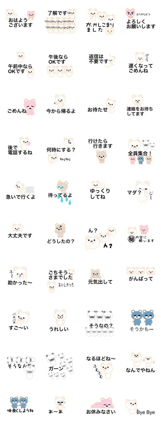 ちょっと大きめの文字で吹き出し風になってます。三色のクマプラス1で日常でよく使う言葉を集めました。