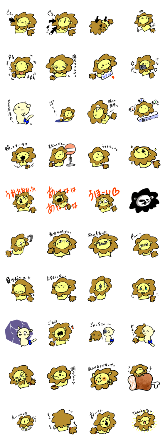 赤いリボンがチャームポイント。表情豊かなライオンのスタンプ。第6弾です。