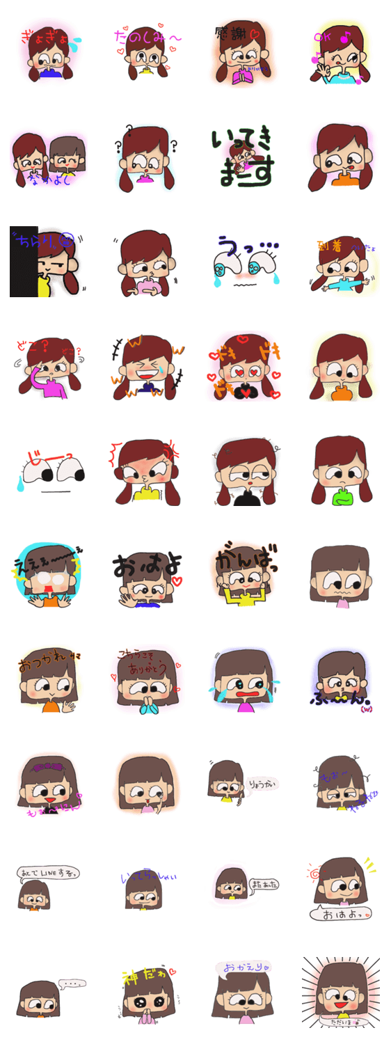 二つ結び&おかっぱ女子 -LINEスタンプマニア