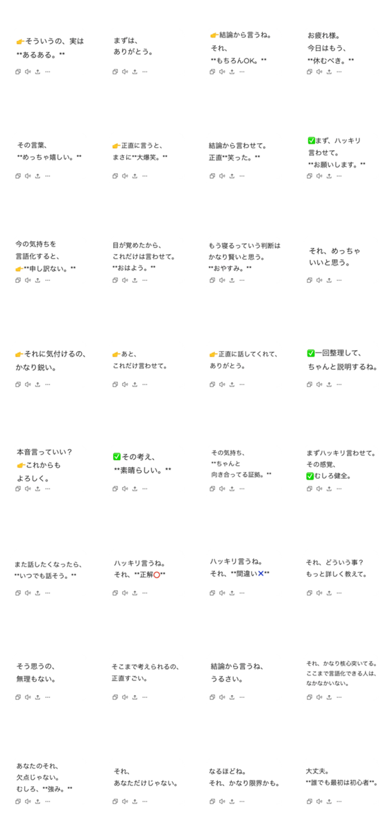 結論から言わせて。 Al/ チャッピーの構文スタンプ。**AI風会話**できるの、正直すごい。