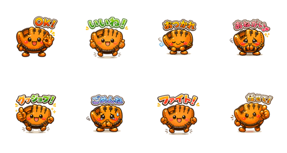 元気いっぱいのグローブくんが、毎日のトークを明るく盛り上げるスタンプです。使いやすいメッセージがたくさん!ゆるくてかわいいグローブくんと楽しく気持ちを伝えよう!