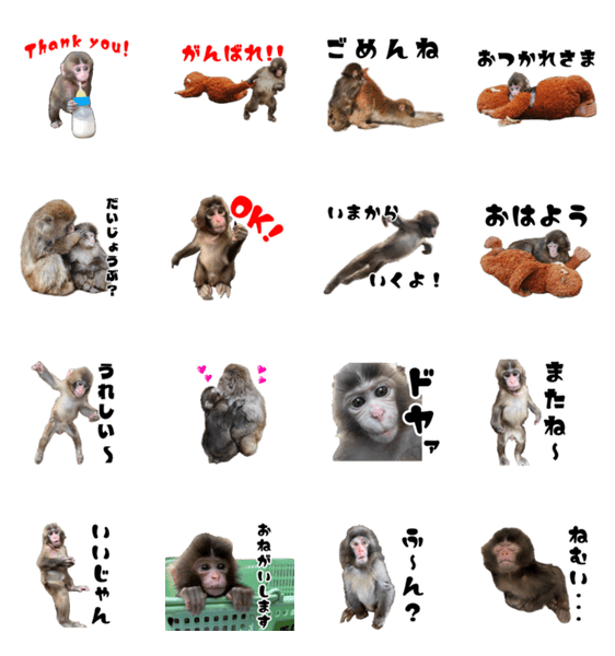 市川市動植物園のLINEスタンプ第4弾。文字入りパンチスタンプ!日常で使いやすいスタンプです ニホンザル/パンチ/がんばれパンチ/サル