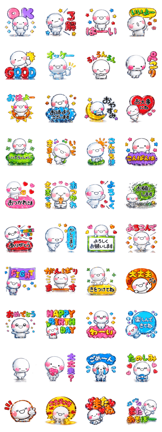 ダイヤモンドのような光沢があるシール風で作成した通常とは違う雰囲気のスタンプです。カラフルでPOPな内容を揃えました。スタンプ初心者の方にもオススメです。