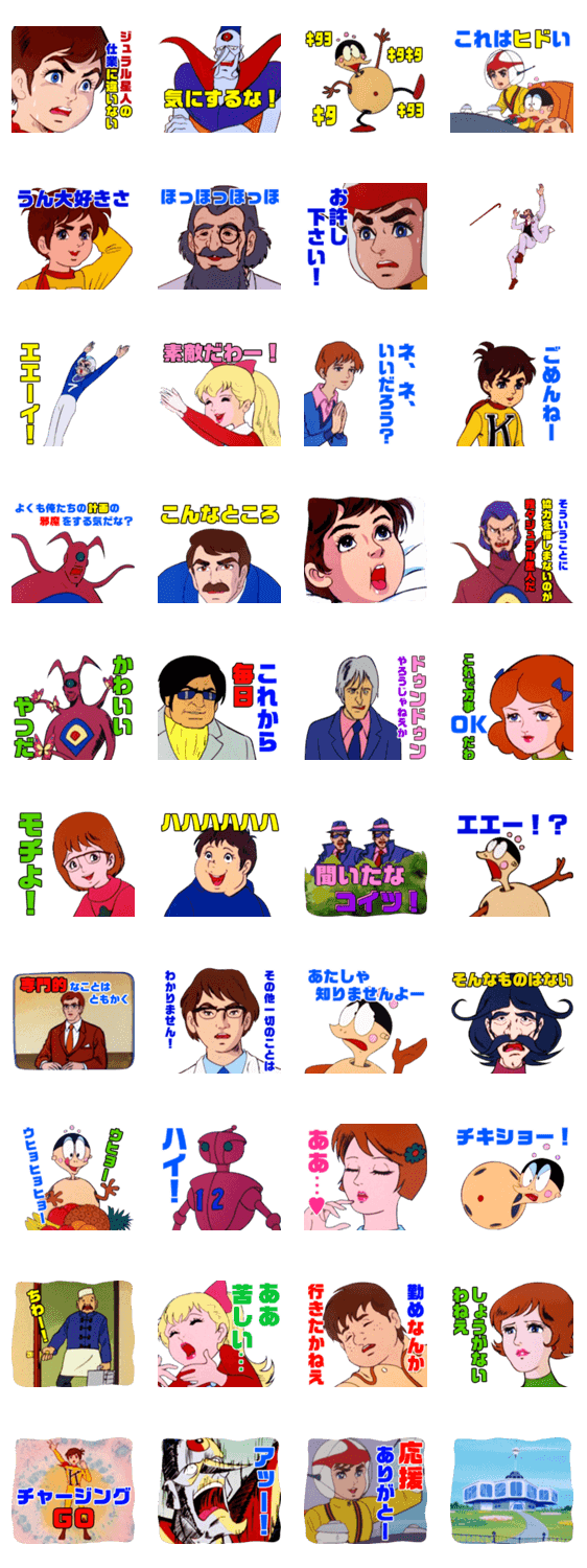 最新流行のアニメ『チャージマン研!』がスタンプになったんだ。専門的なことはともかく、原作に忠実に作られているのがわかるだろう?