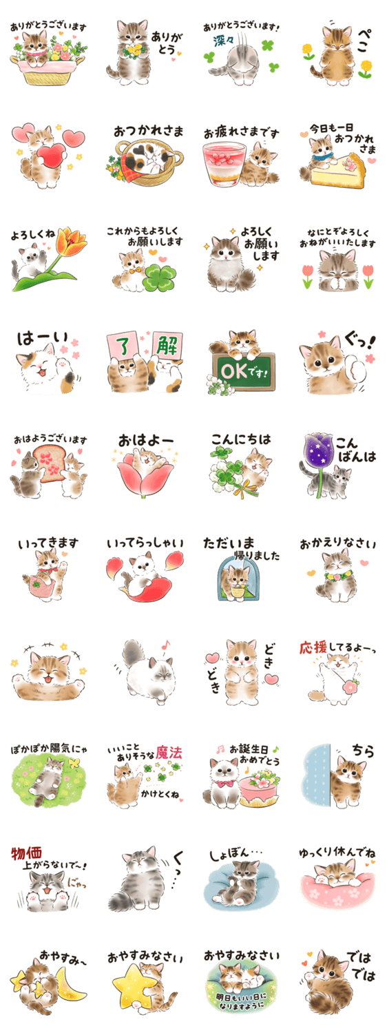毎日使える挨拶が満載♪もふもふロングヘア―な猫たち多めのセットです。(敬語/可愛い/日常/あいさつ/ロングヘア―/長毛種)