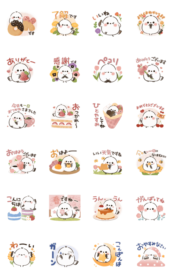 ほんわか可愛いシマエナガが、やさしいあいさつで気持ちをお届け。 「ありがとう」や「おつかれさま」など、毎日のトークに使いやすい言葉がそろった癒し系スタンプです。