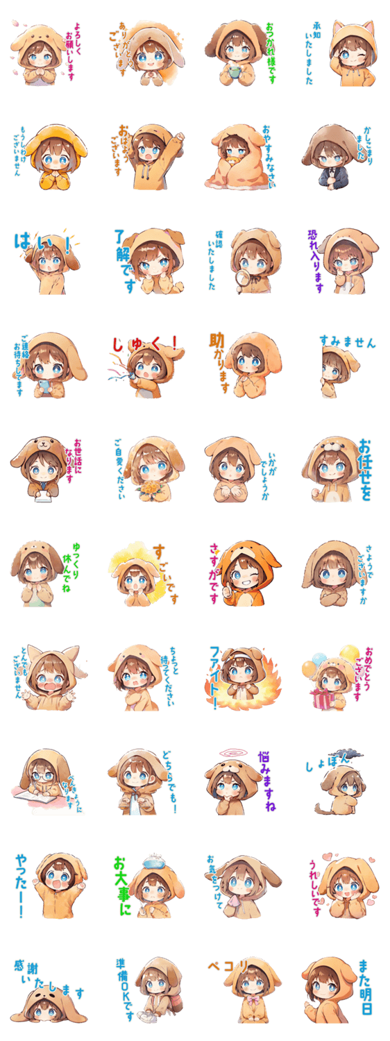 犬耳パーカーの女の子の丁寧な敬語 -LINEスタンプマニア
