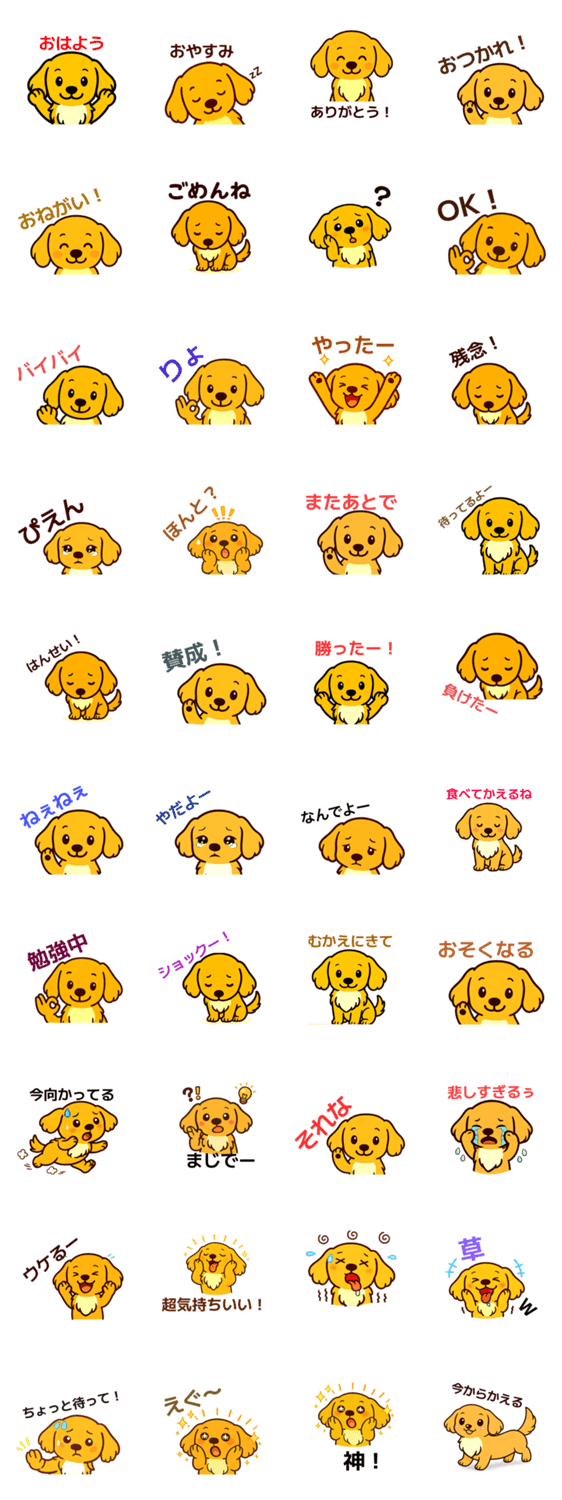 日常で使いやすい言葉を集めたダックスのきなこスタンプです。家族や友達にやさしい気持ちを伝えられます。