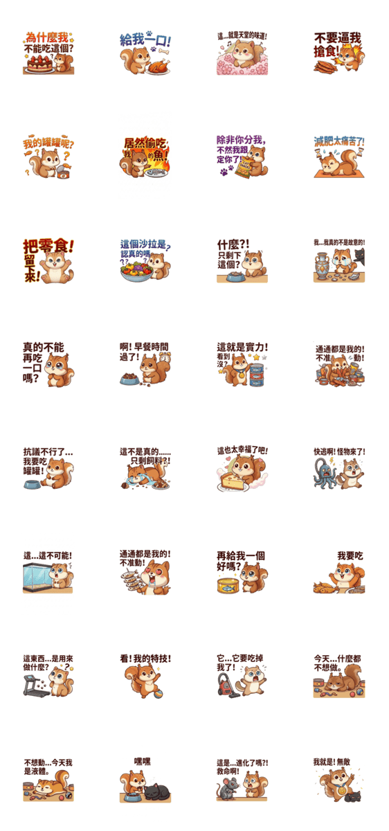 Squirrel, I want to eat! These stickers will show up extra large in chats.