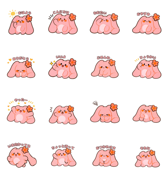 ふわふわピンクうさぎのゆるかわスタンプ かわいい仕草と表情で、日常トークにぴったり! 使うたびに癒されるスタンプです♪