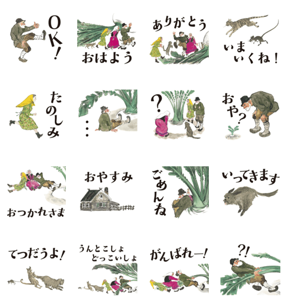 ロングセラー絵本『おおきなかぶ』(A・トルストイ 再話/内田莉莎子 訳/佐藤忠良 画)のLINEスタンプです。みんなで力を合わせてがんばるLINEをぜひお楽しみください。