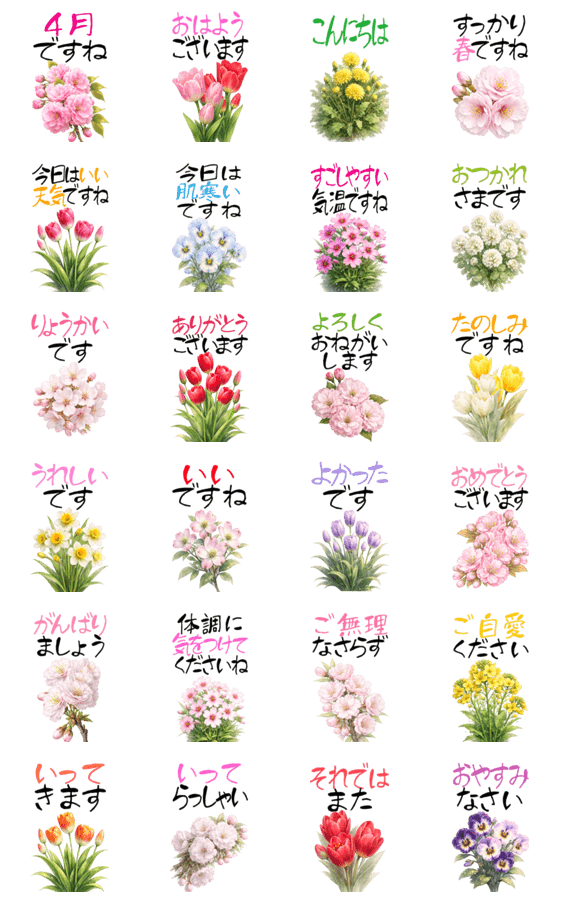 4月 春の花 大きくて見やすい挨拶スタンプ -LINEスタンプマニア