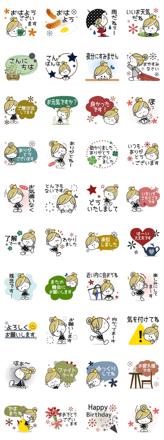 あると便利なお返事楽々ガーリーな挨拶・日常スタンプです♥