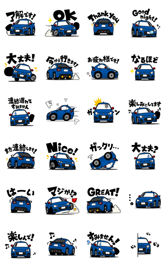 軽量コンパクトできびきび走るスポーツカーのスタンプ第6弾です!友達同士で、チームのグループLINEで、愛車をアピールしちゃおう!