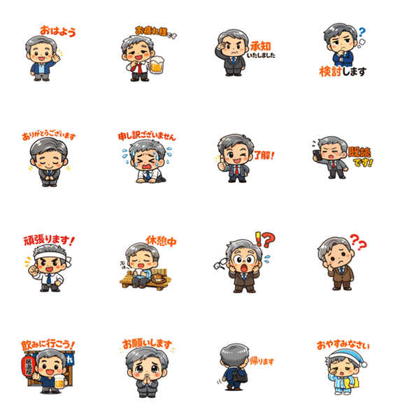 | スタンプ説明 | A charming and slightly funny middle-aged man turned into a lovable mascot! Perfect for daily chats with friends, family, and colleagues. |