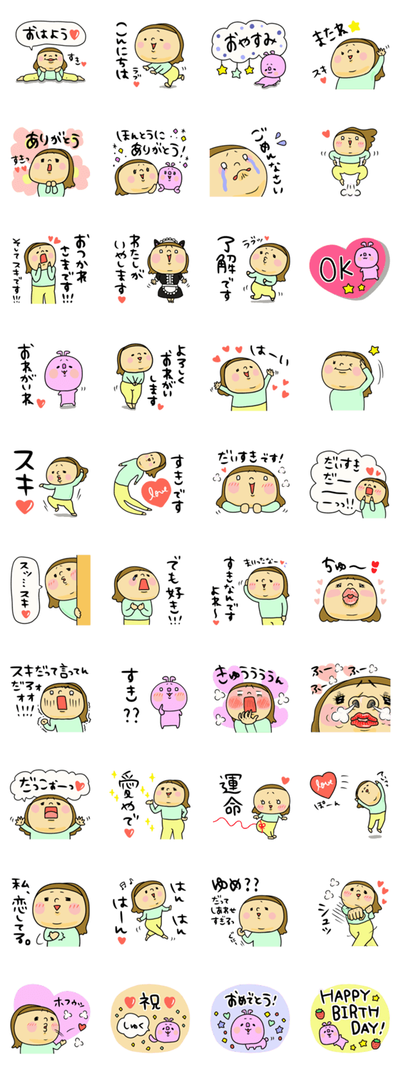 好き、ラブ、愛情を伝えます。大好きな彼や旦那さん、お友達や家族に!ママ要素全く無し…ゆちゃこのスタンプ第9弾。