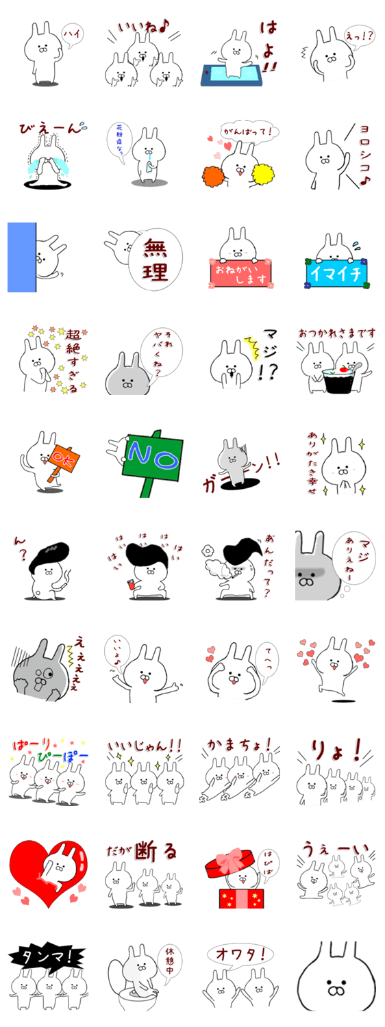 【ちびうさぎシリーズ】シンプルなちびうさぎのスタンプです♪ちょっとだけ、ヤンキー、ぱりぴぽなど入っています。楽しいトークになりますように(^^)